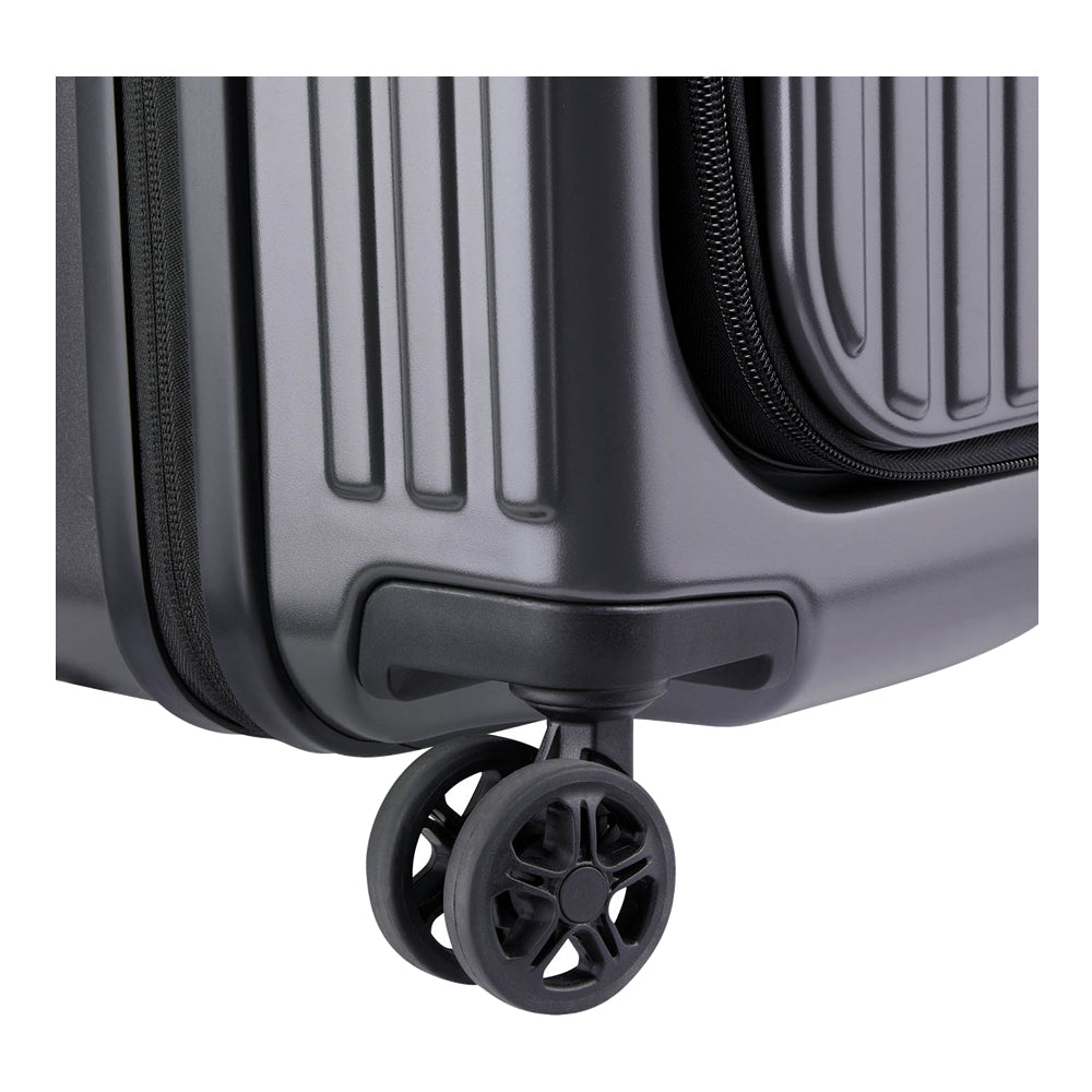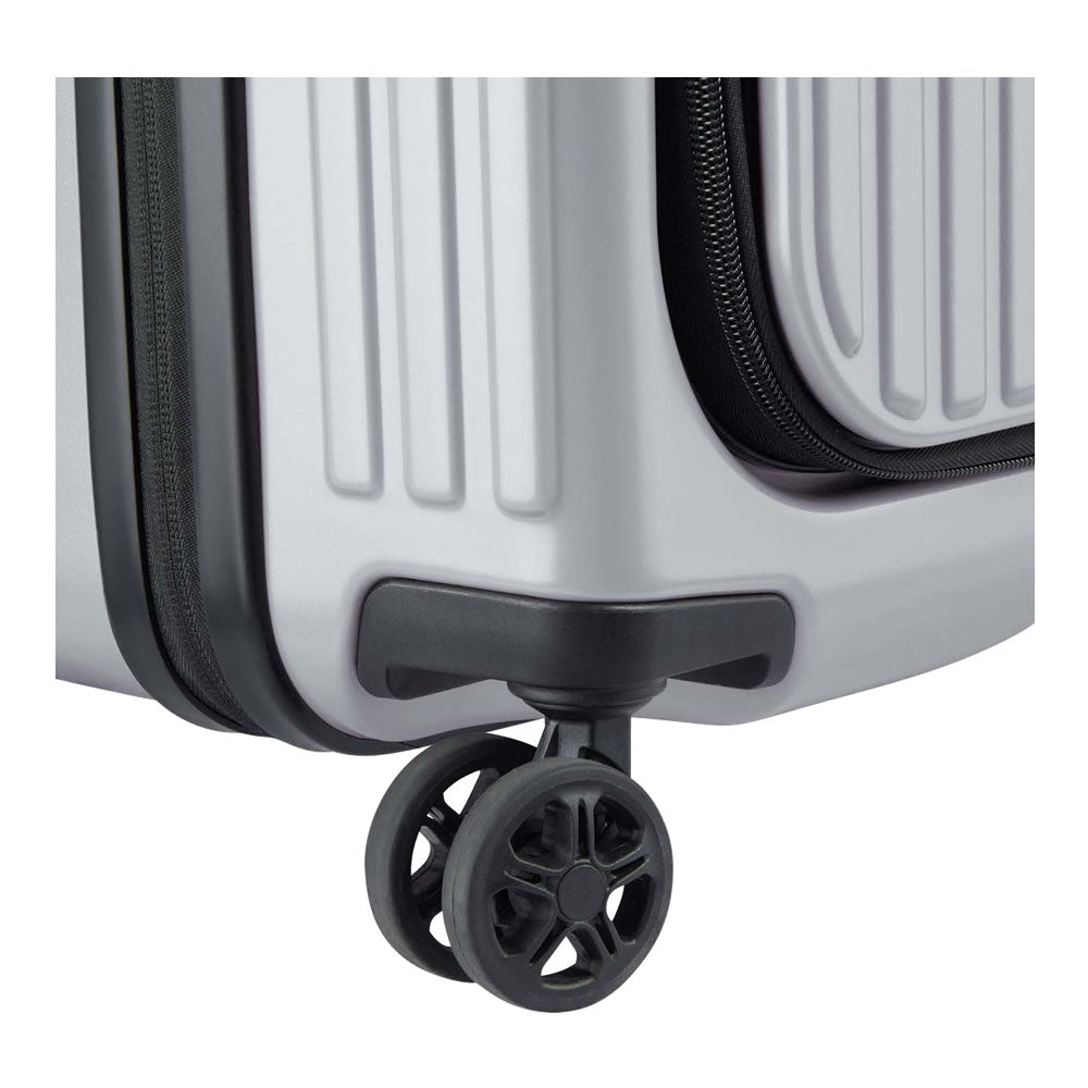 SECURITIME ZIP tiene 4 ruedas dobles muy maniobrables y silenciosas. Robustas y multidireccionales, han sido especialmente diseñadas para aligerar el peso del equipaje. ¡Con su comodidad de rodadura, viajar por estaciones y aeropuertos es un juego de niños