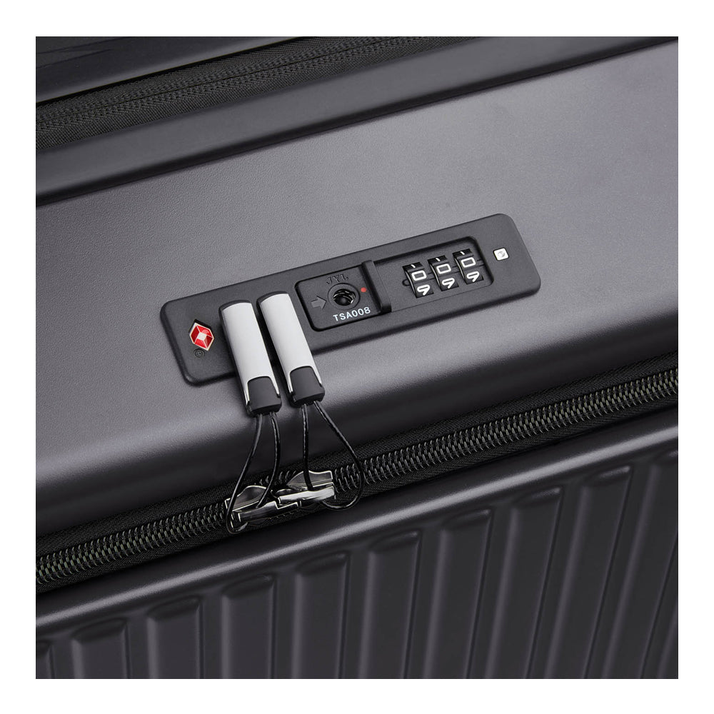 Su equipaje está equipado con el nuevo sistema de cierre ultraseguro patentado por DELSEY: la cremallera SECURITECH® 3. Este cierre único es 3 veces más resistente a la intrusión que una cremallera convencional y ofrece una seguridad óptima a su equipaje gracias a su funda metálica que protege la cremallera. Las cremalleras también están reforzadas, hasta 3 veces más resistentes que las cremalleras estándar. La original cremallera antirrobo es tu mejor aliado para viajar seguro. No más equipaje estropeado por ¡Aduanas! El candado de combinación TSA le permite asegurar su equipaje con su código personal, mientras deja que la Autoridad de Seguridad del Transporte (TSA) controle su equipaje sin dañarlo, usando una llave específica