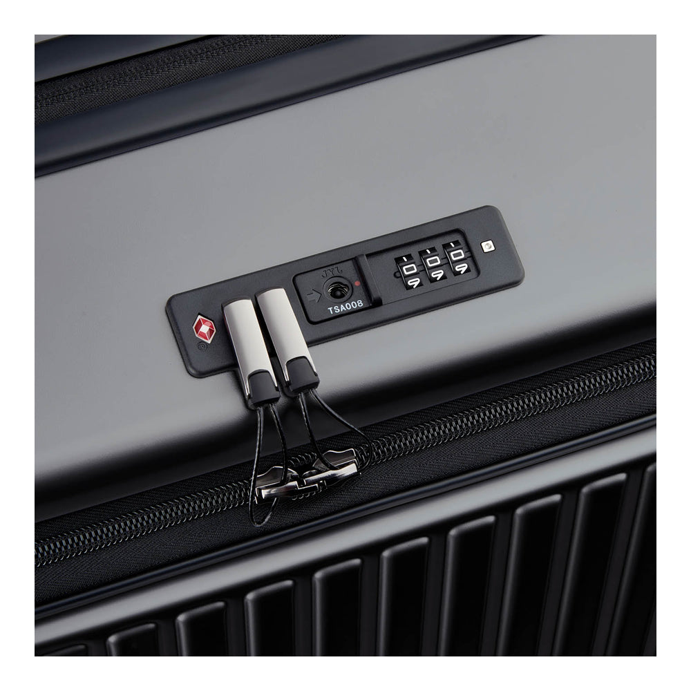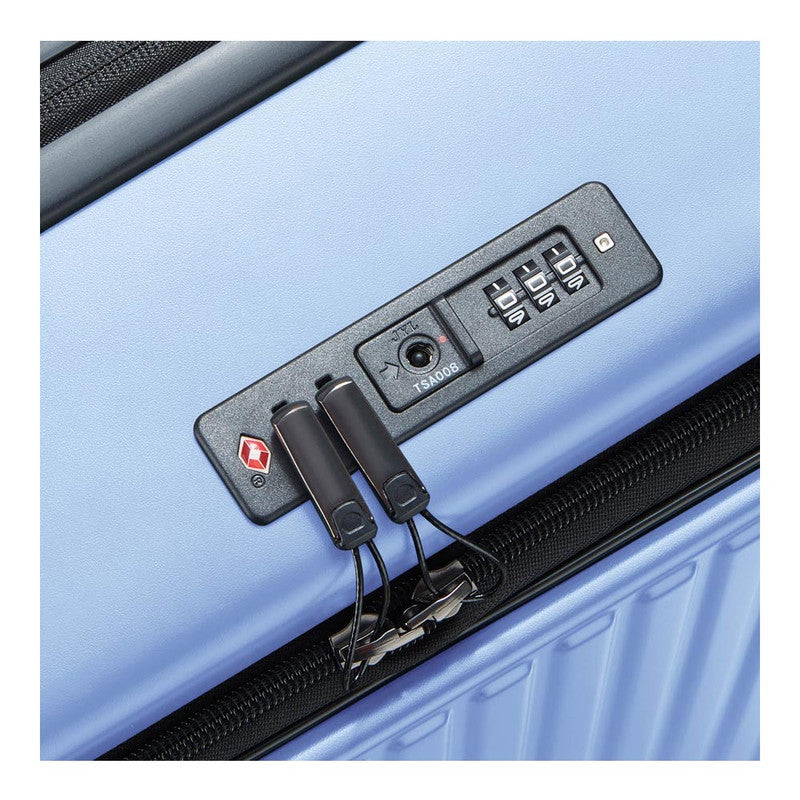 Su equipaje está equipado con el nuevo sistema de cierre ultraseguro patentado por DELSEY: la cremallera SECURITECH® 3, tres veces más resistente a la intrusión que un cierre convencional y ofrece una seguridad óptima adicional a su equipaje gracias a una funda metálica que protege y asegura los deslizadores!. Las cremalleras también están reforzadas, hasta 3 veces más resistentes que las cremalleras estándar. Este nuevo tipo de cierre antirrobo es tu mejor aliado para viajar seguro. Además el candado de combinación TSA le permite asegurar su equipaje con su código personal, mientras deja que la Autoridad de Seguridad del Transporte (TSA) controle su equipaje sin dañarlo, usando una llave específica