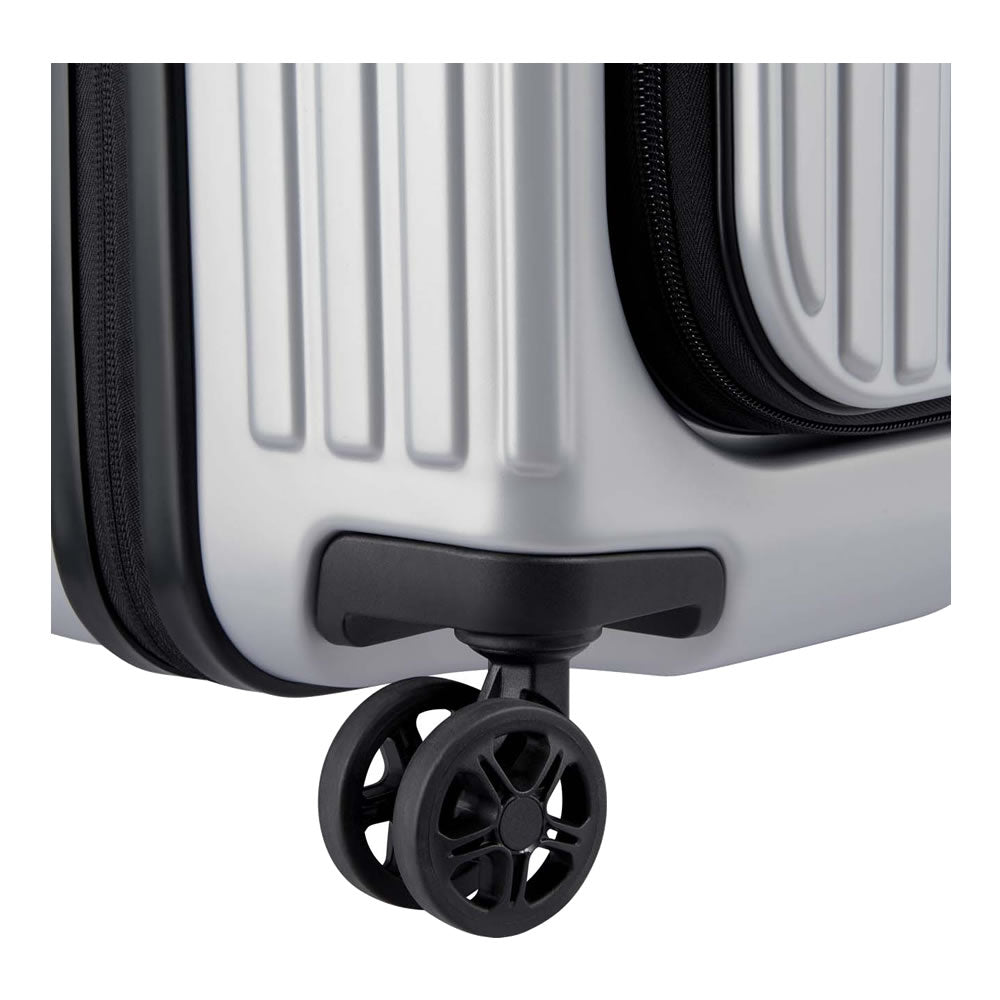 SECURITIME ZIP tiene 4 ruedas dobles muy maniobrables y silenciosas. Robustas y multidireccionales, han sido especialmente diseñadas para aligerar el peso del equipaje. ¡Con su comodidad de rodadura, viajar por estaciones y aeropuertos es un juego de niños