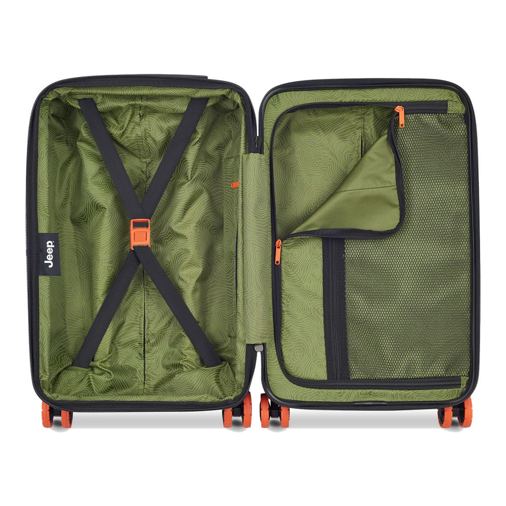 Presentamos la valija de cabina rígida Jeep 2B, resistente y lista para la aventura, que muestra con orgullo el icónico logotipo de Jeep.