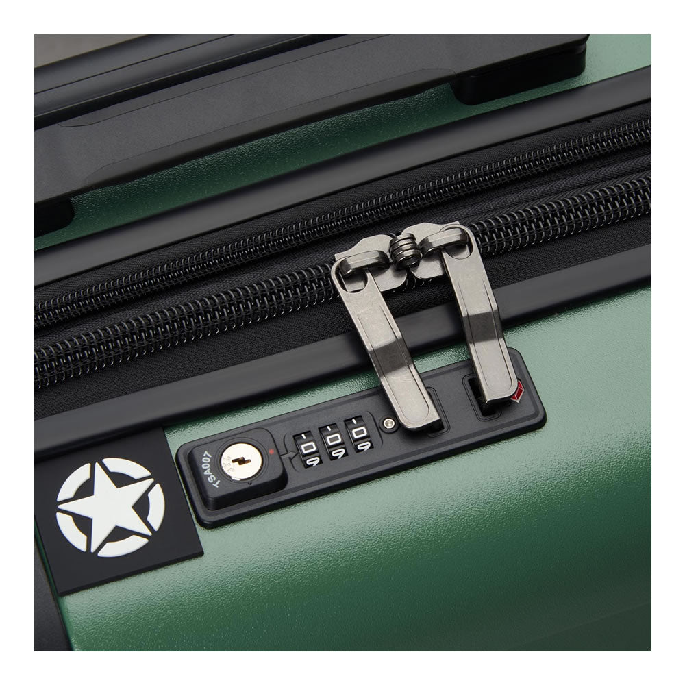 Logotipo en relieve inspirado en Jeep que rinde homenaje al legendario automóvil Jeep y garantiza que su equipaje sea tan icónico como sus aventuras al aire libre.