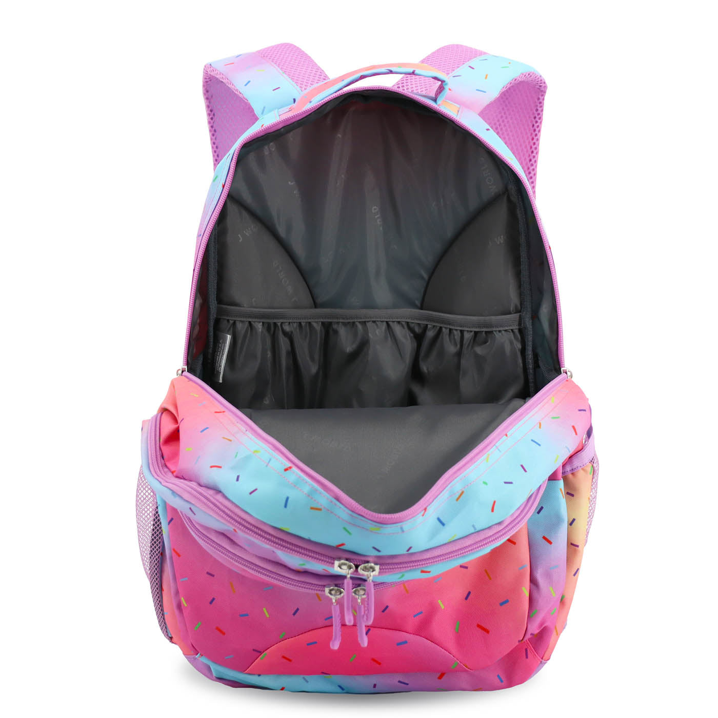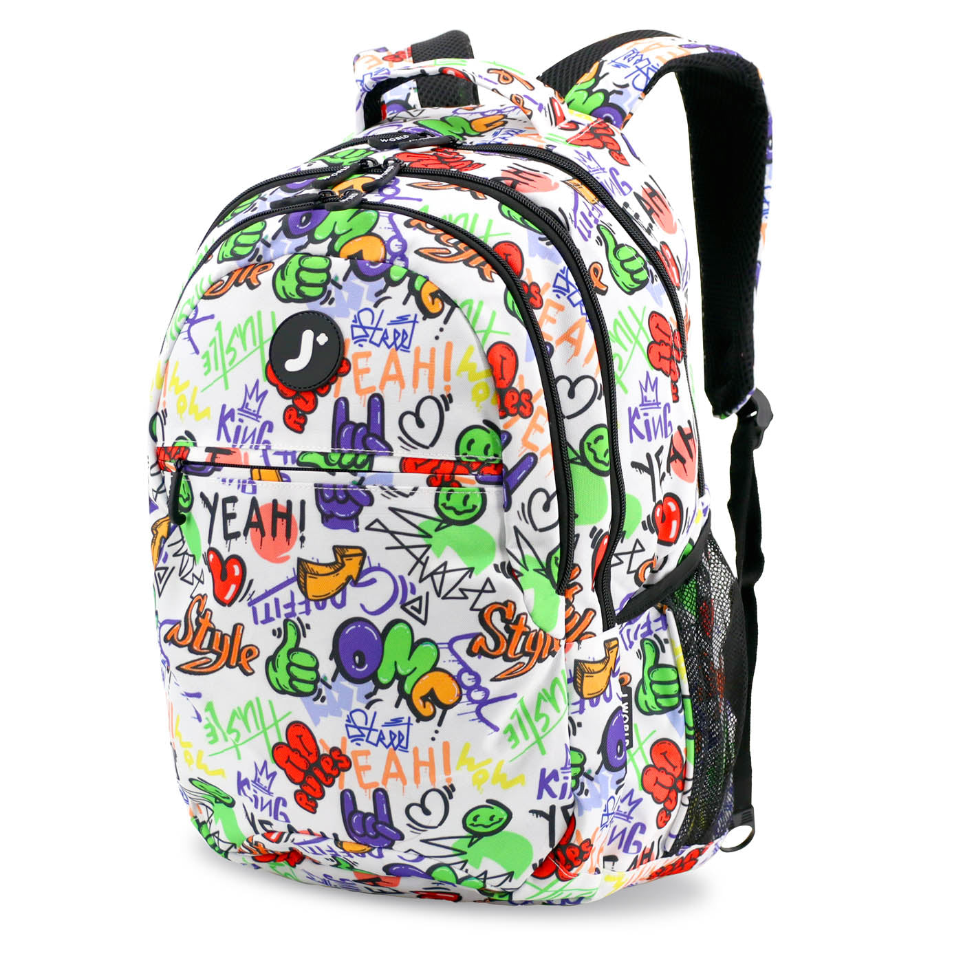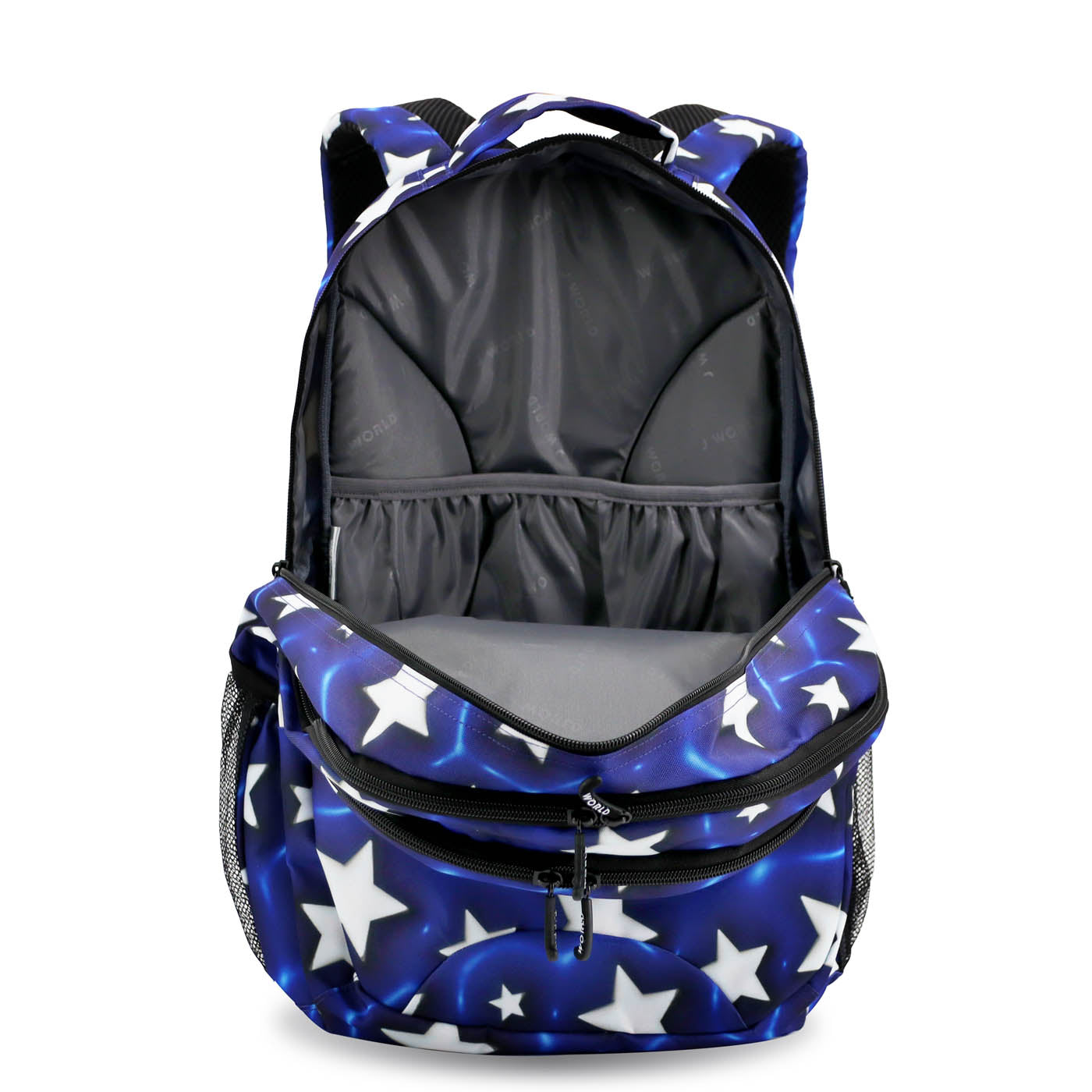 Respaldo acolchado para mayor comodidad Bolsillo para laptop en el compartimento principal Bolsillo frontal utilitario y bolsillos laterales para botella de agua Tirantes ergonómicos en forma de “S” Asa superior y tirantes acolchados con malla de aire Tres compartimentos diferentes para espacio de guardado adicional Tela resistente al agua 600D con recubrimiento de PU