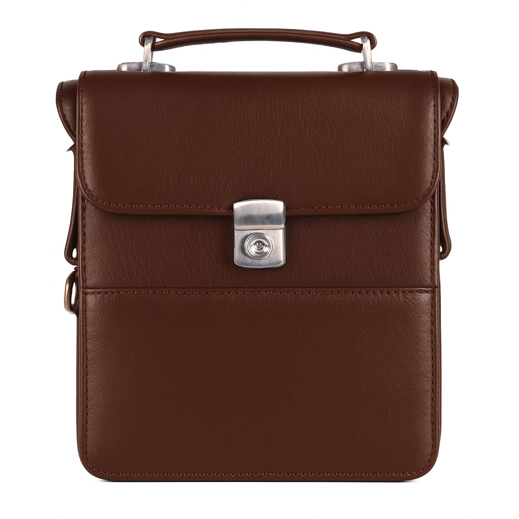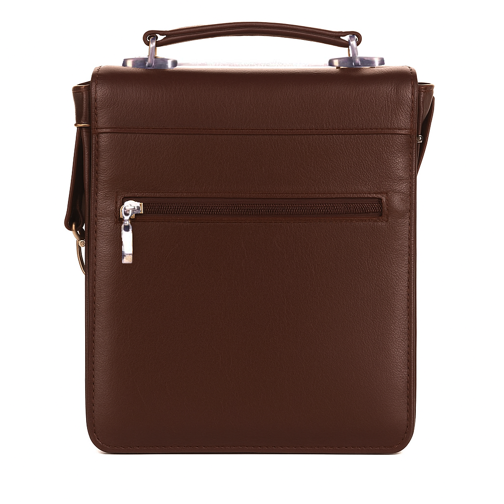 Manija de cuero cómoda, fijada a la cartera con herrajes niquelados metálicos muy resistentes.