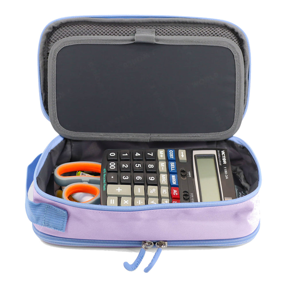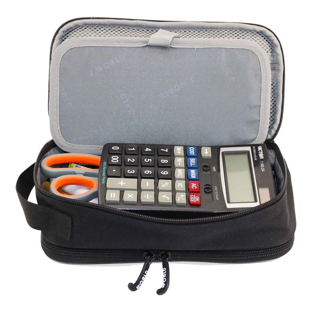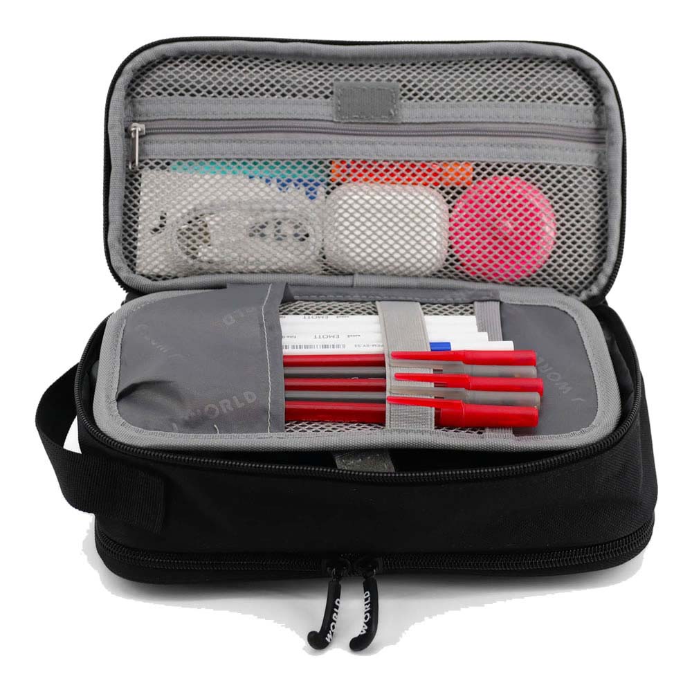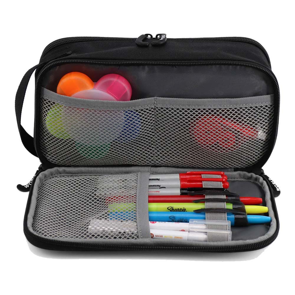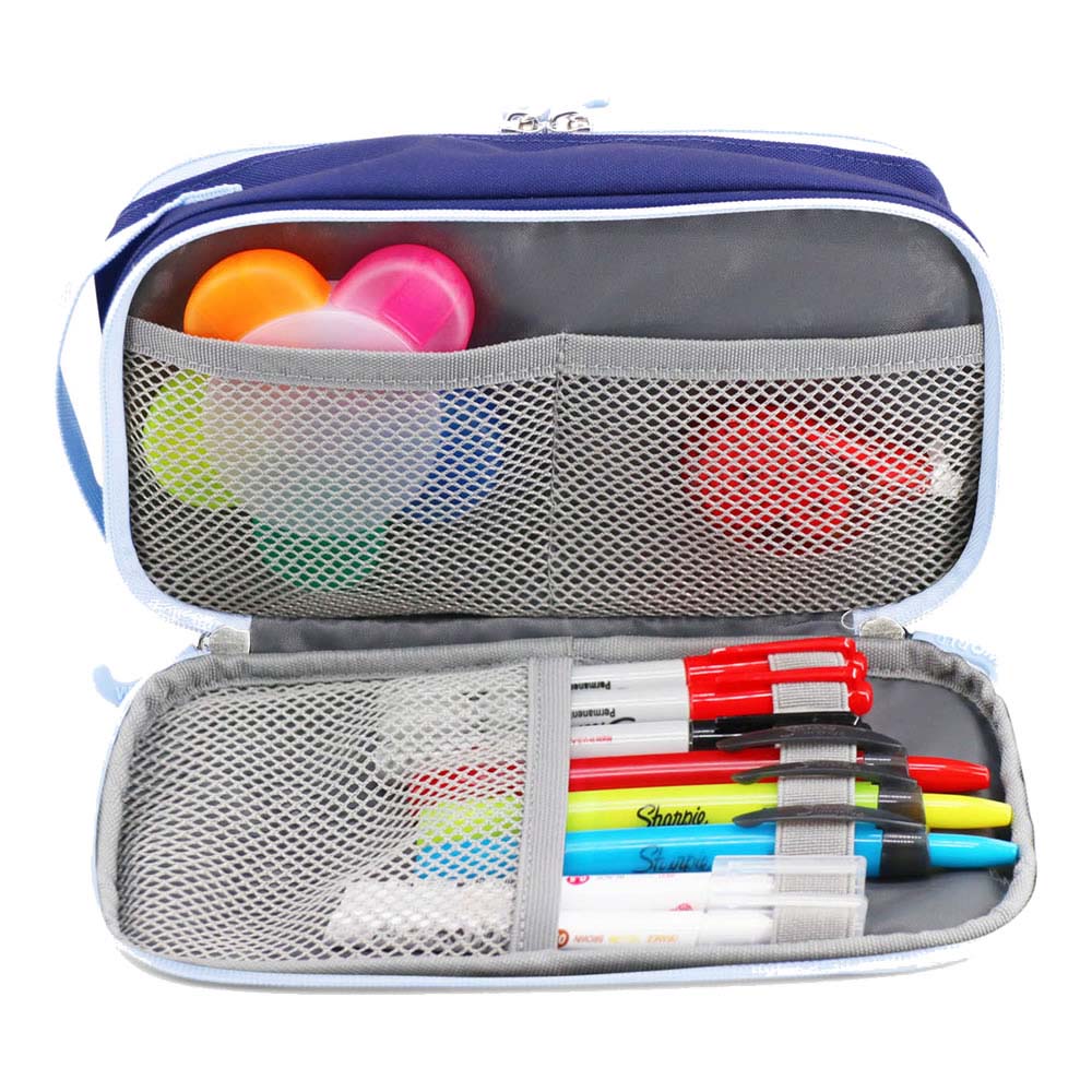 Amplio compartimiento principal Bolsillos internos y porta lápices para una fácil organización Correa de mano para un uso cómodo Material resistente y repelente al agua