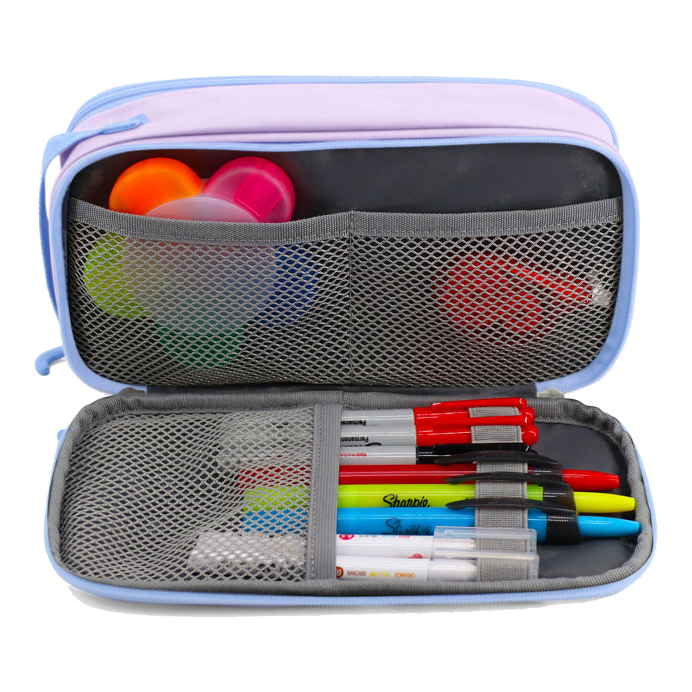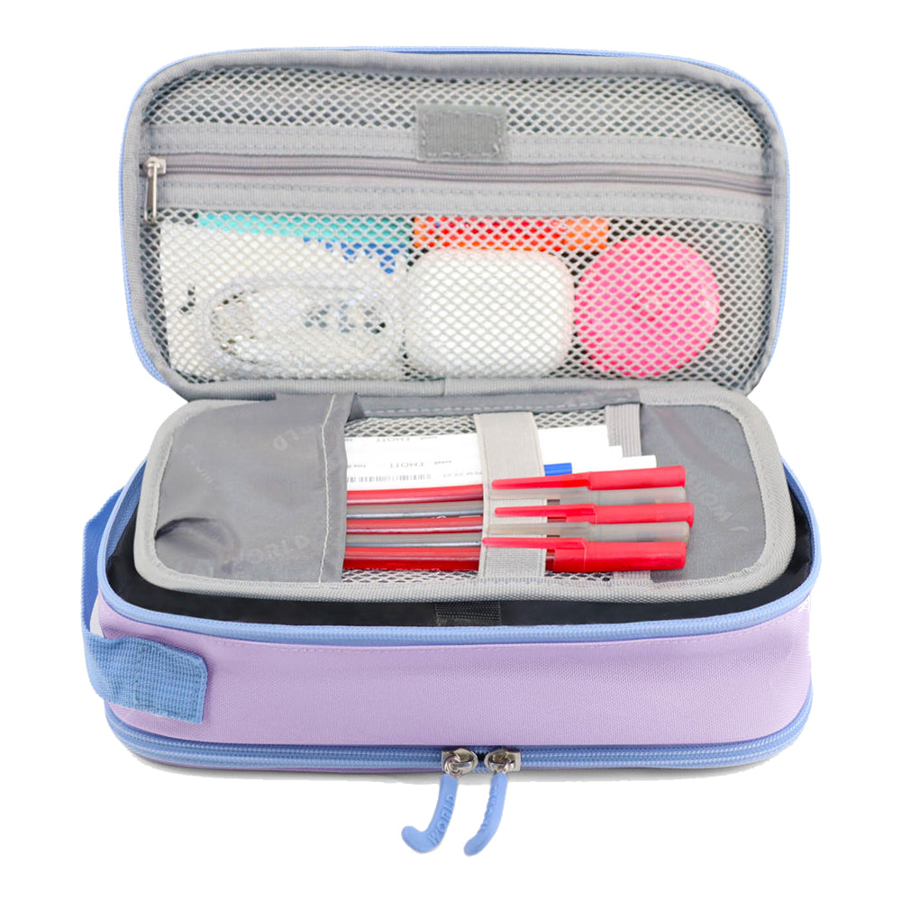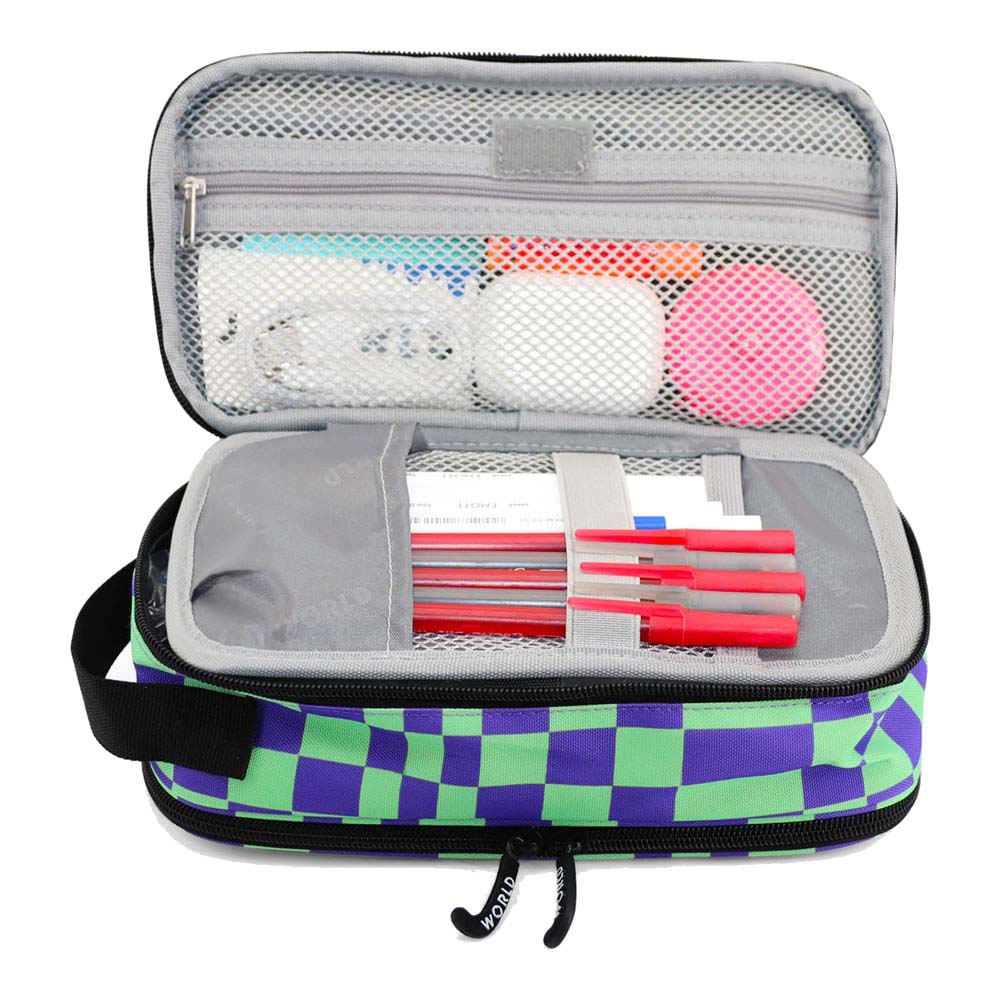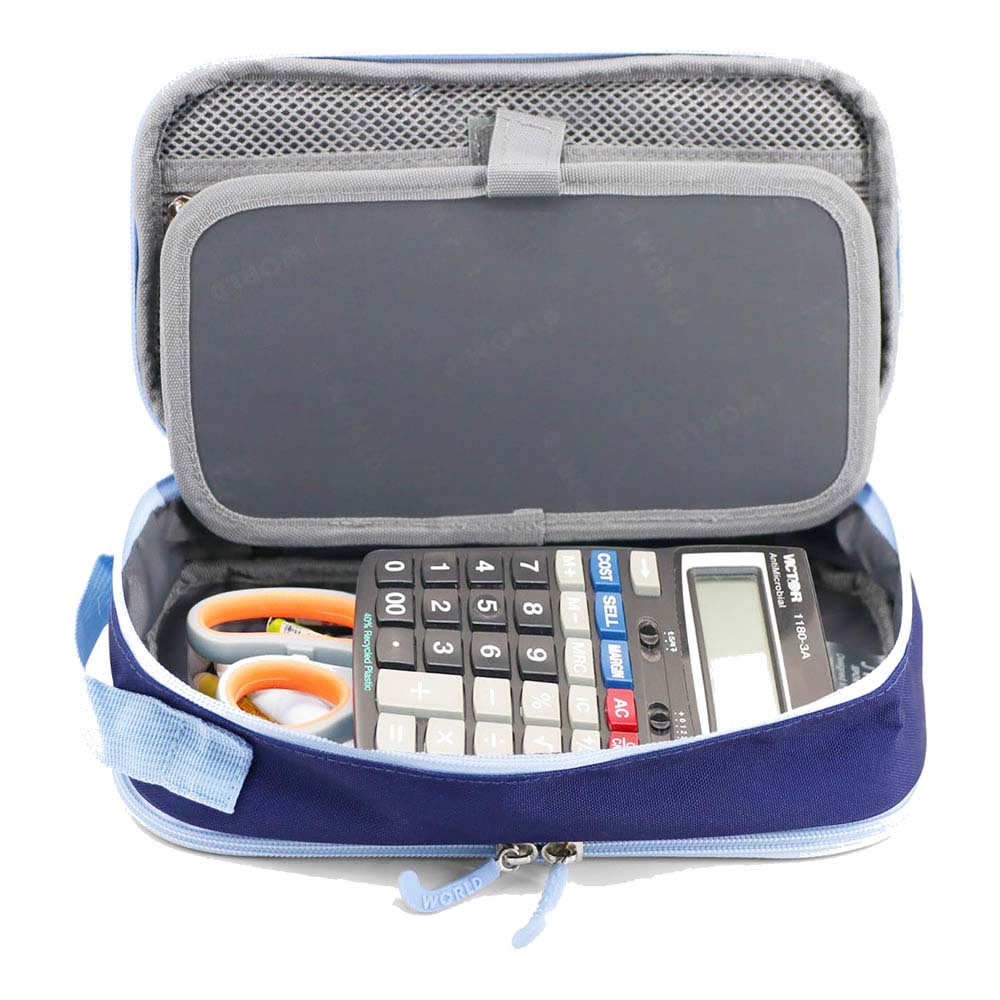 Amplio compartimiento principal Bolsillos internos y porta lápices para una fácil organización Correa de mano para un uso cómodo Material resistente y repelente al agua