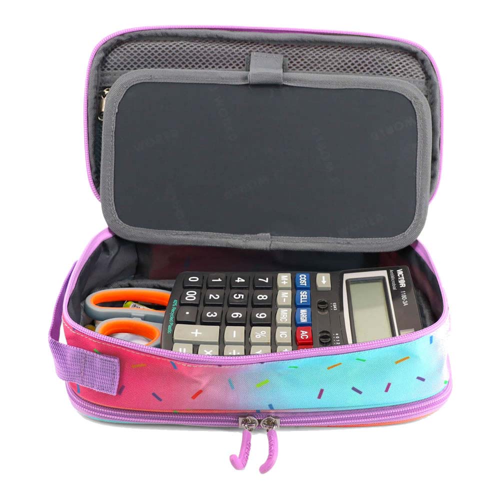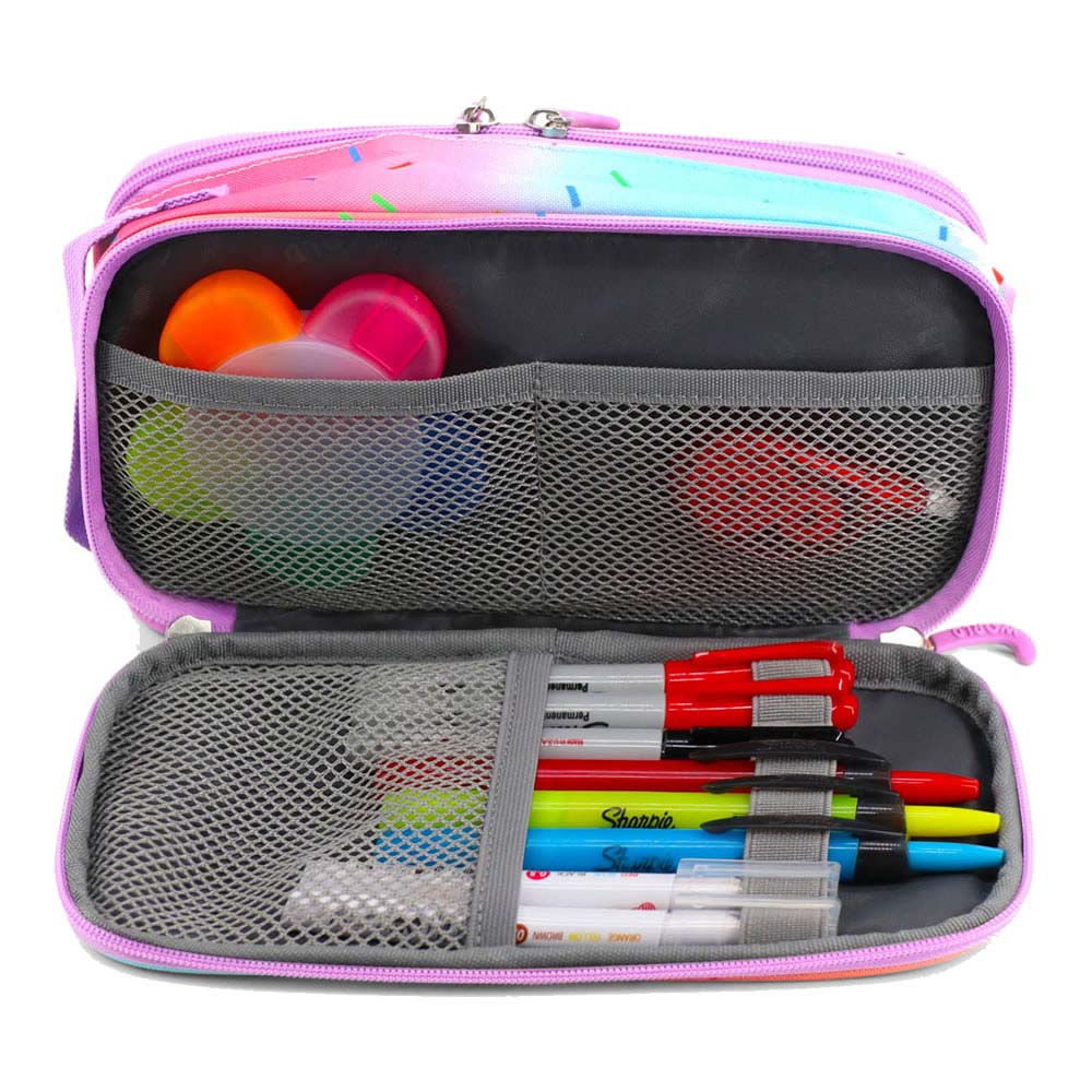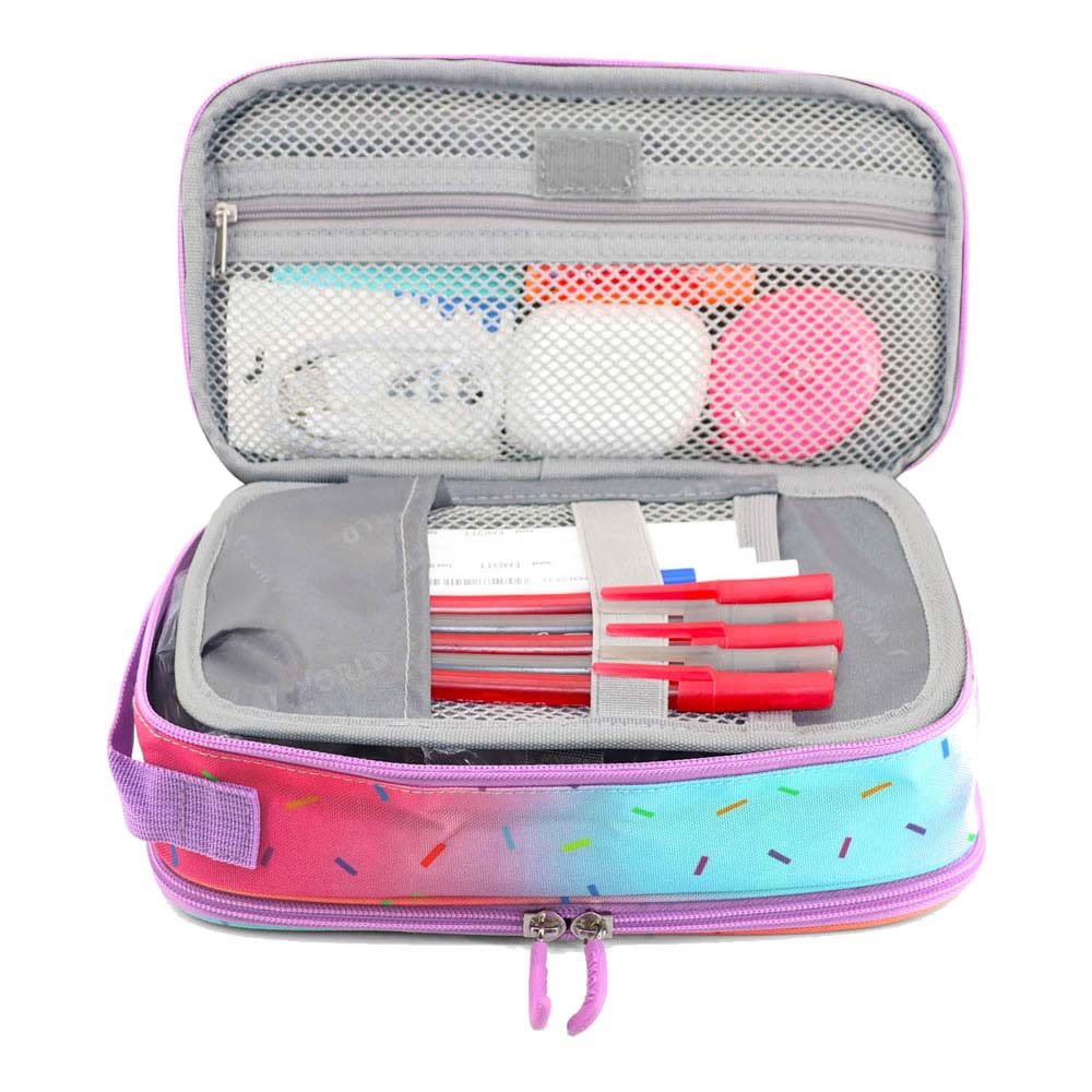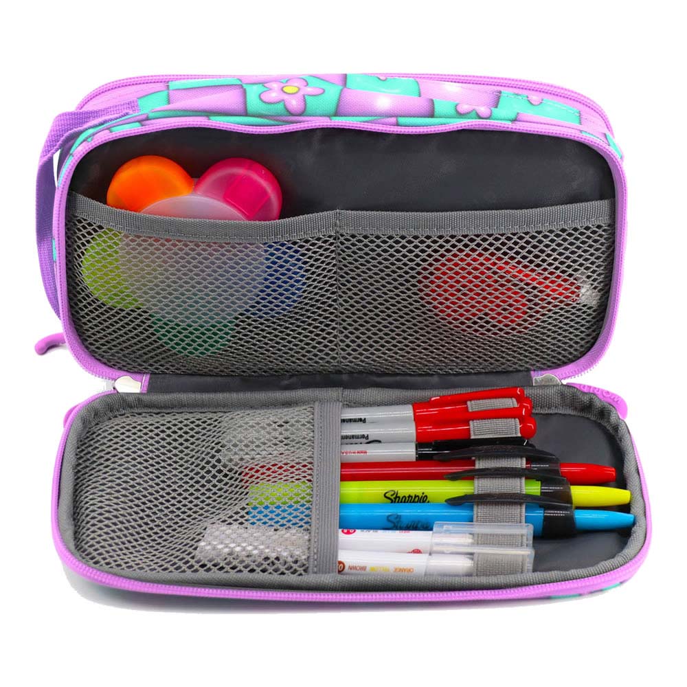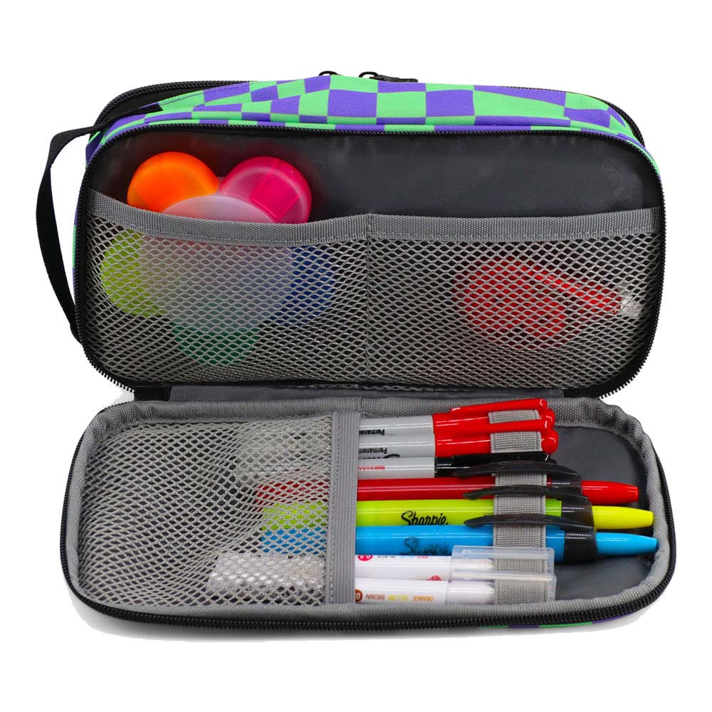 Amplio compartimiento principal Bolsillos internos y porta lápices para una fácil organización Correa de mano para un uso cómodo Material resistente y repelente al agua